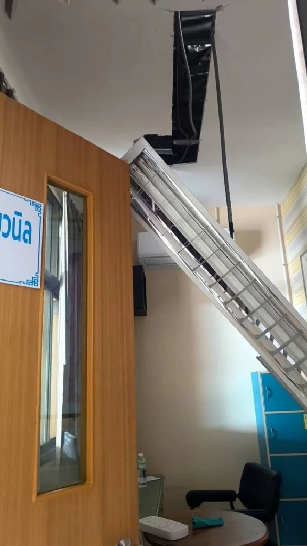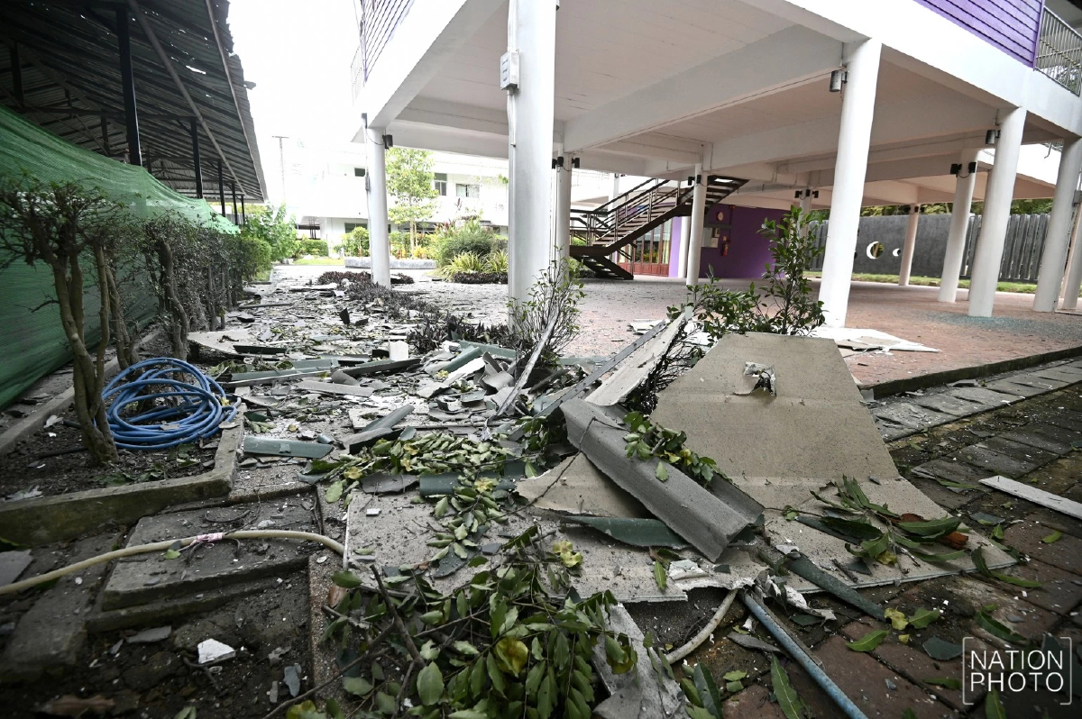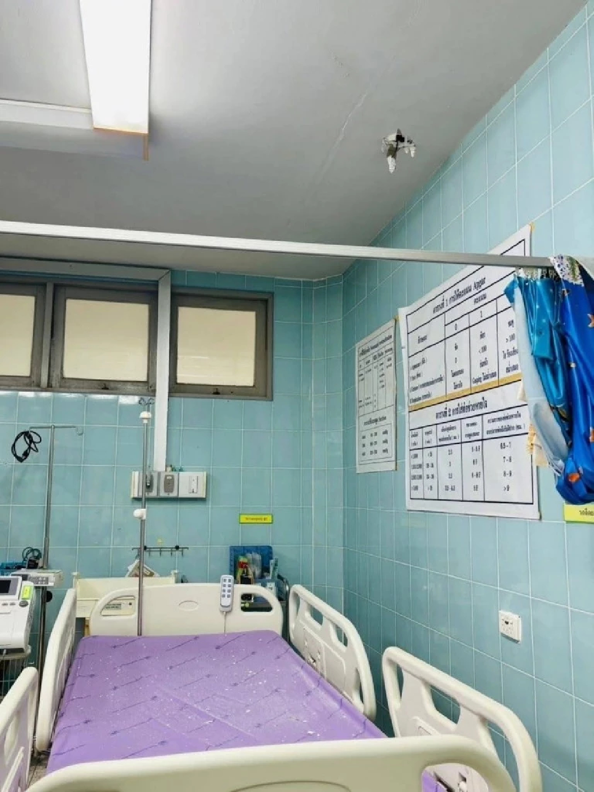 เสียหายหนัก 45 ล้าน สภาพความเสียหาย รพ.พนมดงรัก จ.สุรินทร์ หลังถูกจรวดกัมพูชา โดยจำเป็นต้องสร้างใหม่ 4 อาคาร.