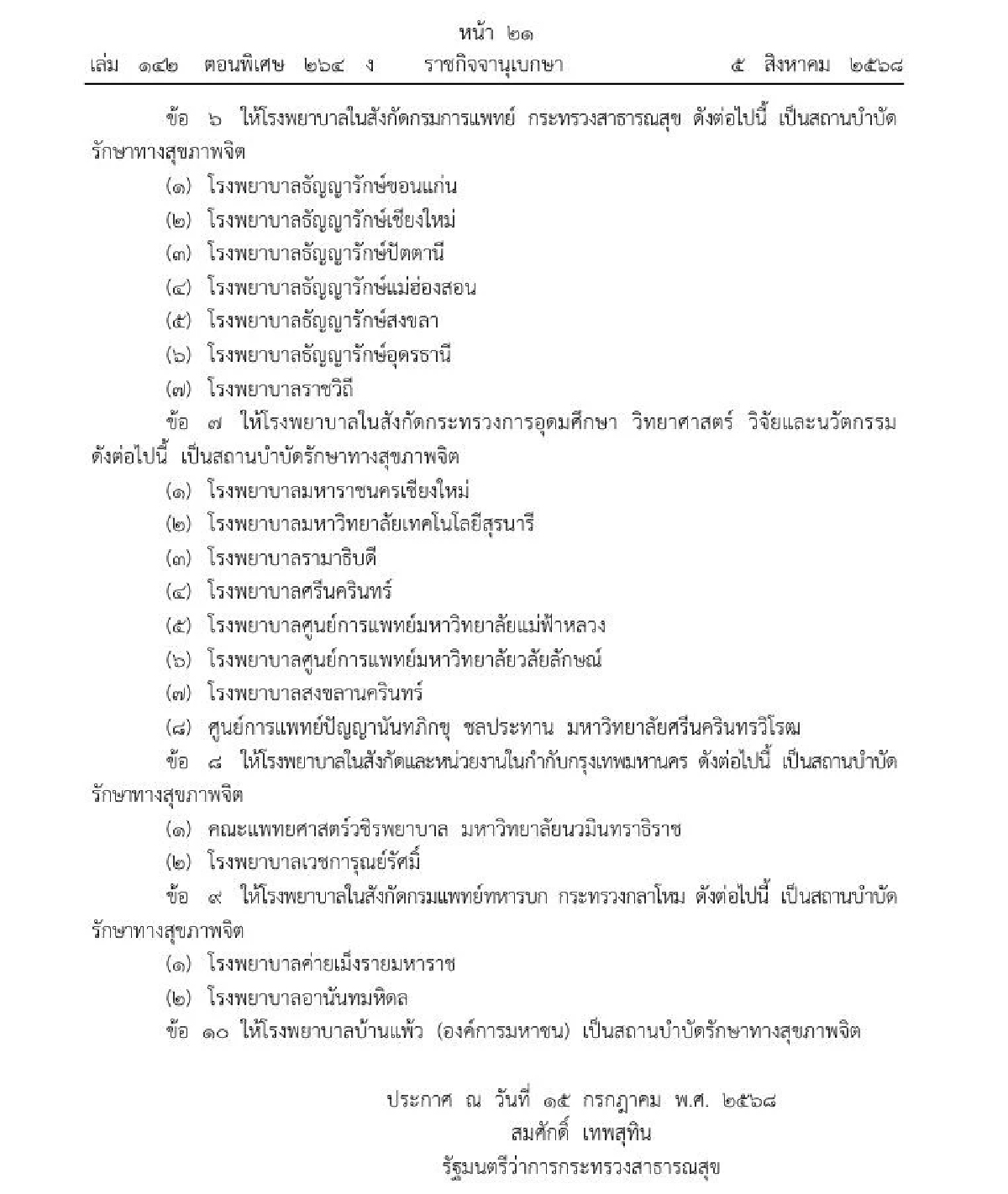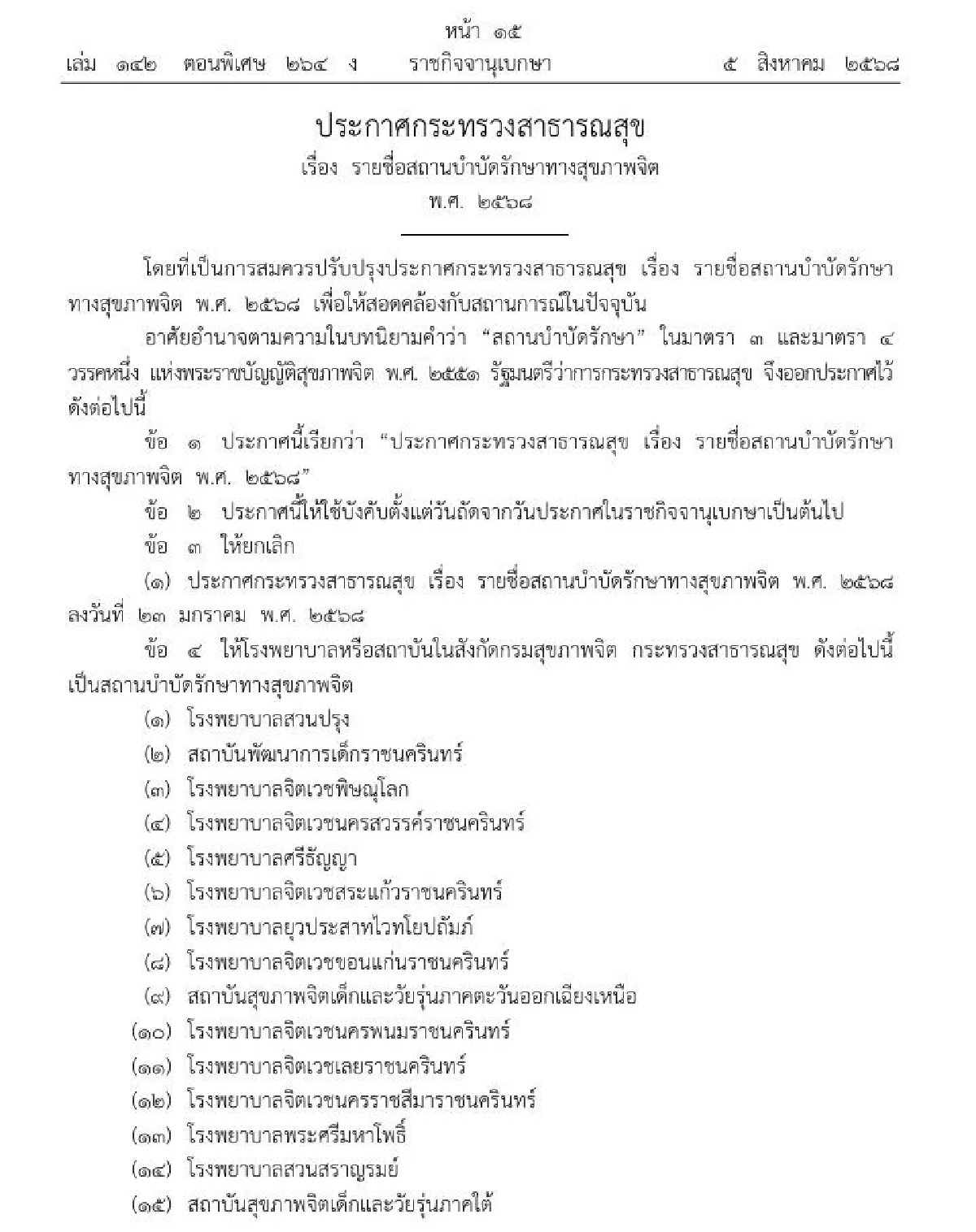 อัลบั้มรูป ราชกิจจาฯประกาศ รายชื่อสถานบำบัดรักษาทางสุขภาพจิต พ.ศ. ๒๕๖๘