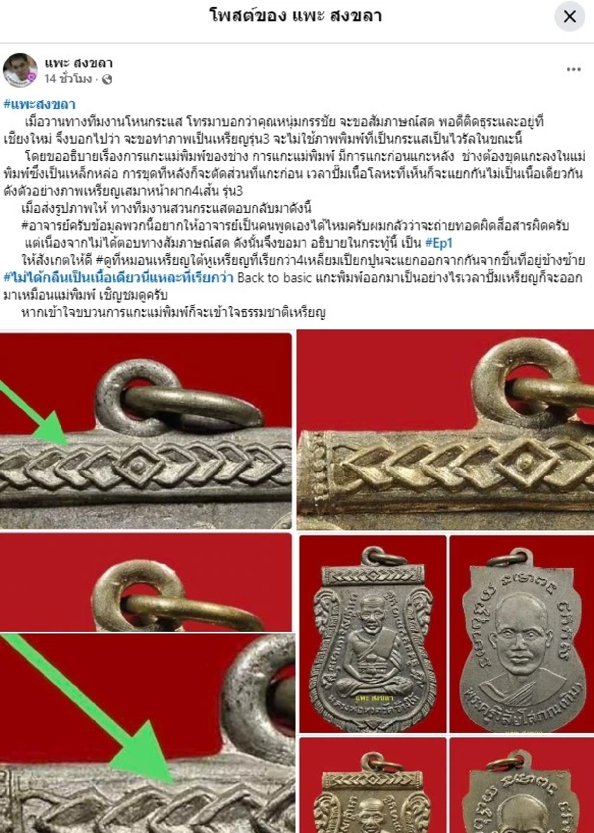 อัลบั้มรูป กระจ่างชัด "แพะ สงขลา" โชว์เหรียญหลวงปู่ทวดรุ่น 3 อธิบายละเอียดถึงการแกะแม่พิมพ์ของช่าง คราวนี้เลิกเถียงกันได้หรือยัง