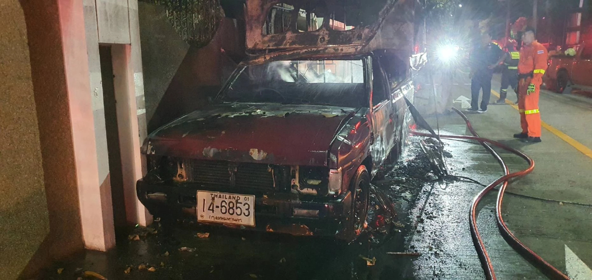 เลขทะเบียน ไฟไหม้รถสองแถวกลางซอยพระราม 9 กลางดึก ชาวบ้านผวา ล่าสุดเจ้าหน้าที่ดับเพลิงหัวหมากคุมเพลิงได้แล้ว